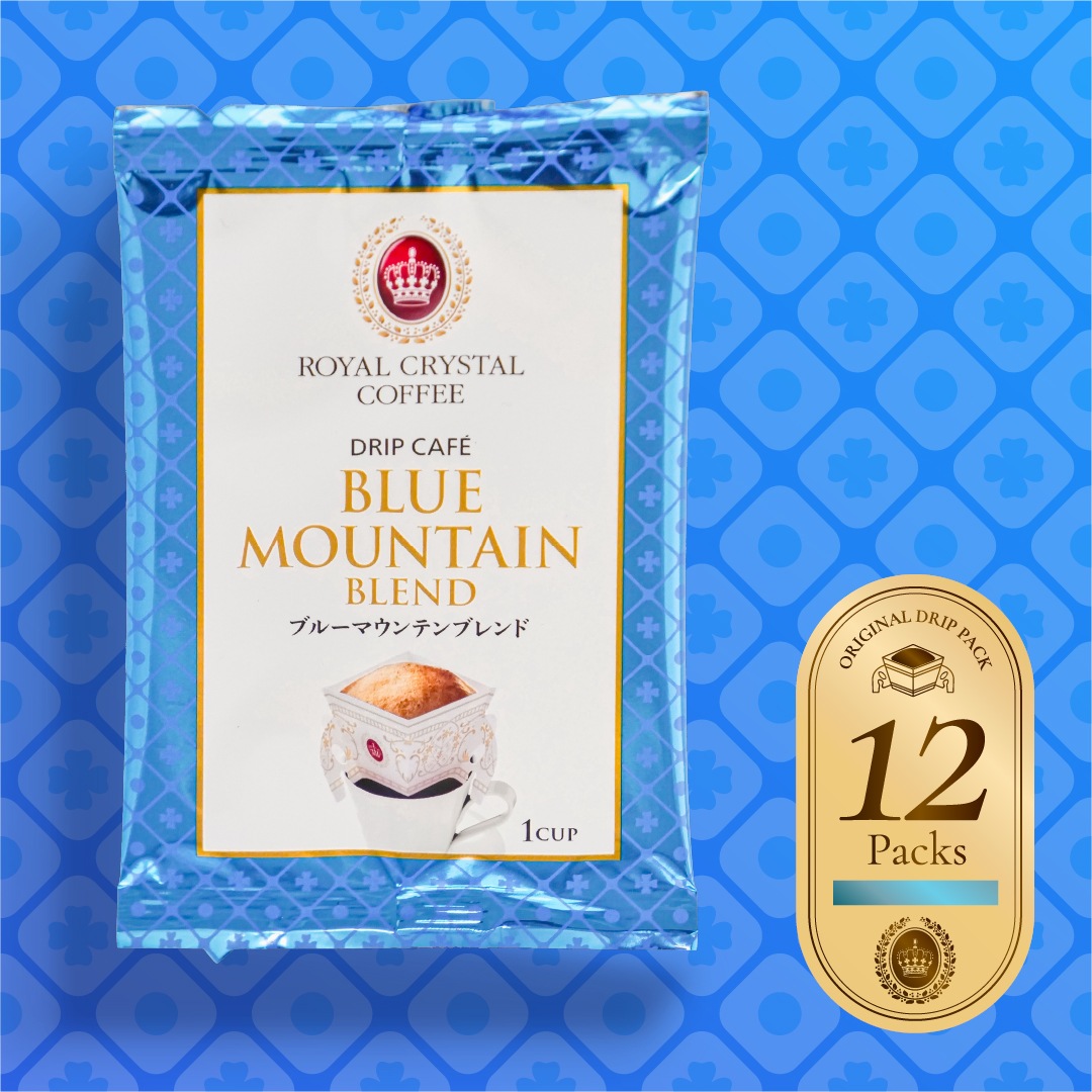【オンラインストア限定】 ブルーマウンテンブレンド <デイリーコーヒー/12袋> 毎日の暮らしに寄り添う、ご自宅用デイリーコーヒーセットが新登場。 ロイヤルクリスタルのブレンドの魅力を、ご家庭でも手軽にお楽しみいただけるドリップコーヒーセットです。 朝の一杯から仕事の合間、食後のリラックスタイムまで。 極上のブレンドコーヒーを日常的に楽しんでいただけるよう、オンラインストア限定でセット販売を開始しました。 「まずは一度、飲んでみたい」という方にもおすすめ。 お湯を注ぐだけで、ハンドドリップのような安定した美味しさと香りをお楽しみいただけます。 ストックしやすく、ご自宅でのデイリーコーヒーに最適なセットです。