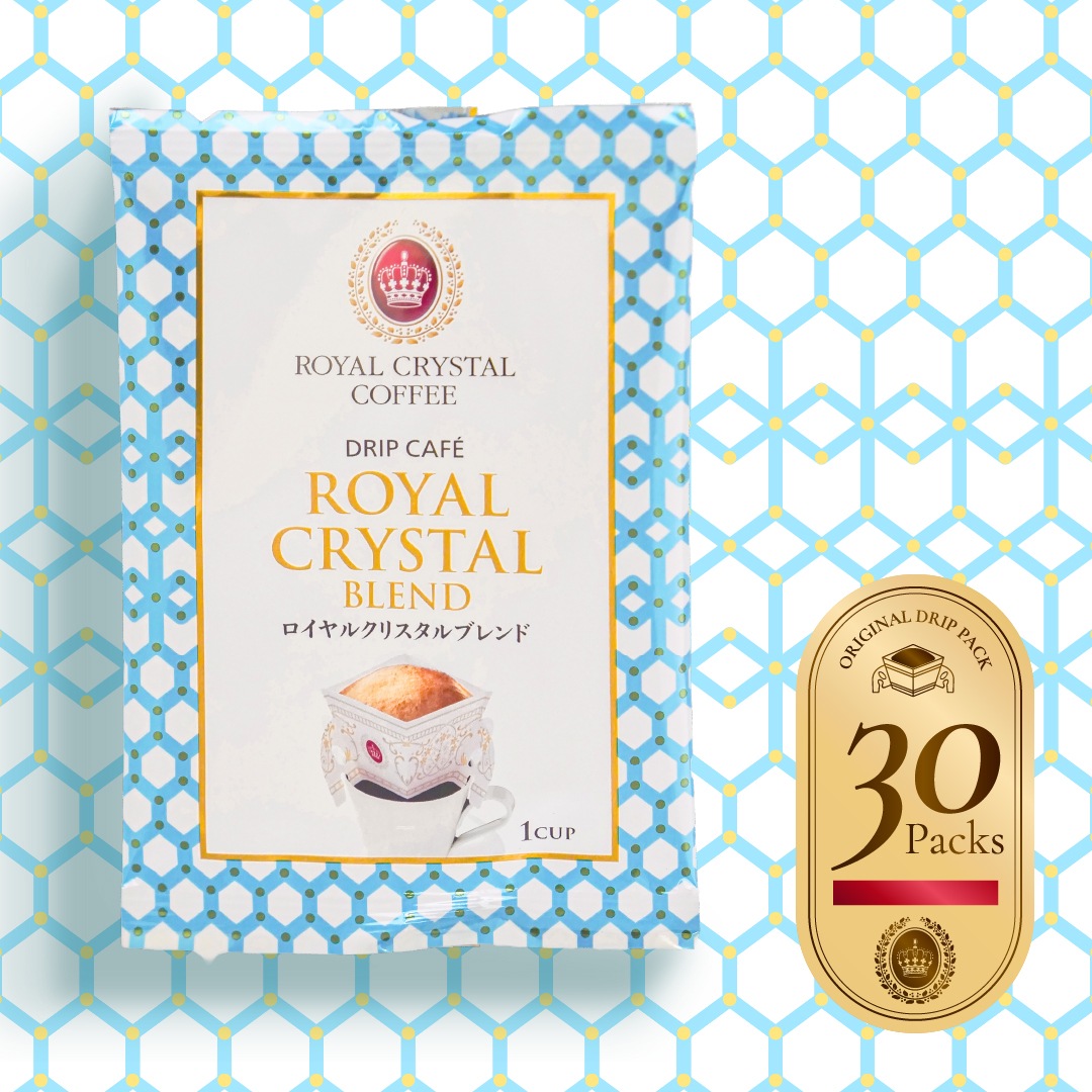 【オンラインストア限定】 ロイヤルクリスタルブレンド <デイリーコーヒー/30袋> 毎日の暮らしに寄り添う、ご自宅用デイリーコーヒーセットが新登場。 ロイヤルクリスタルのブレンドの魅力を、ご家庭でも手軽にお楽しみいただけるドリップコーヒーセットです。 朝の一杯から仕事の合間、食後のリラックスタイムまで。 極上のブレンドコーヒーを日常的に楽しんでいただけるよう、オンラインストア限定でセット販売を開始しました。 「まずは一度、飲んでみたい」という方にもおすすめ。 お湯を注ぐだけで、ハンドドリップのような安定した美味しさと香りをお楽しみいただけます。 ストックしやすく、ご自宅でのデイリーコーヒーに最適なセットです。